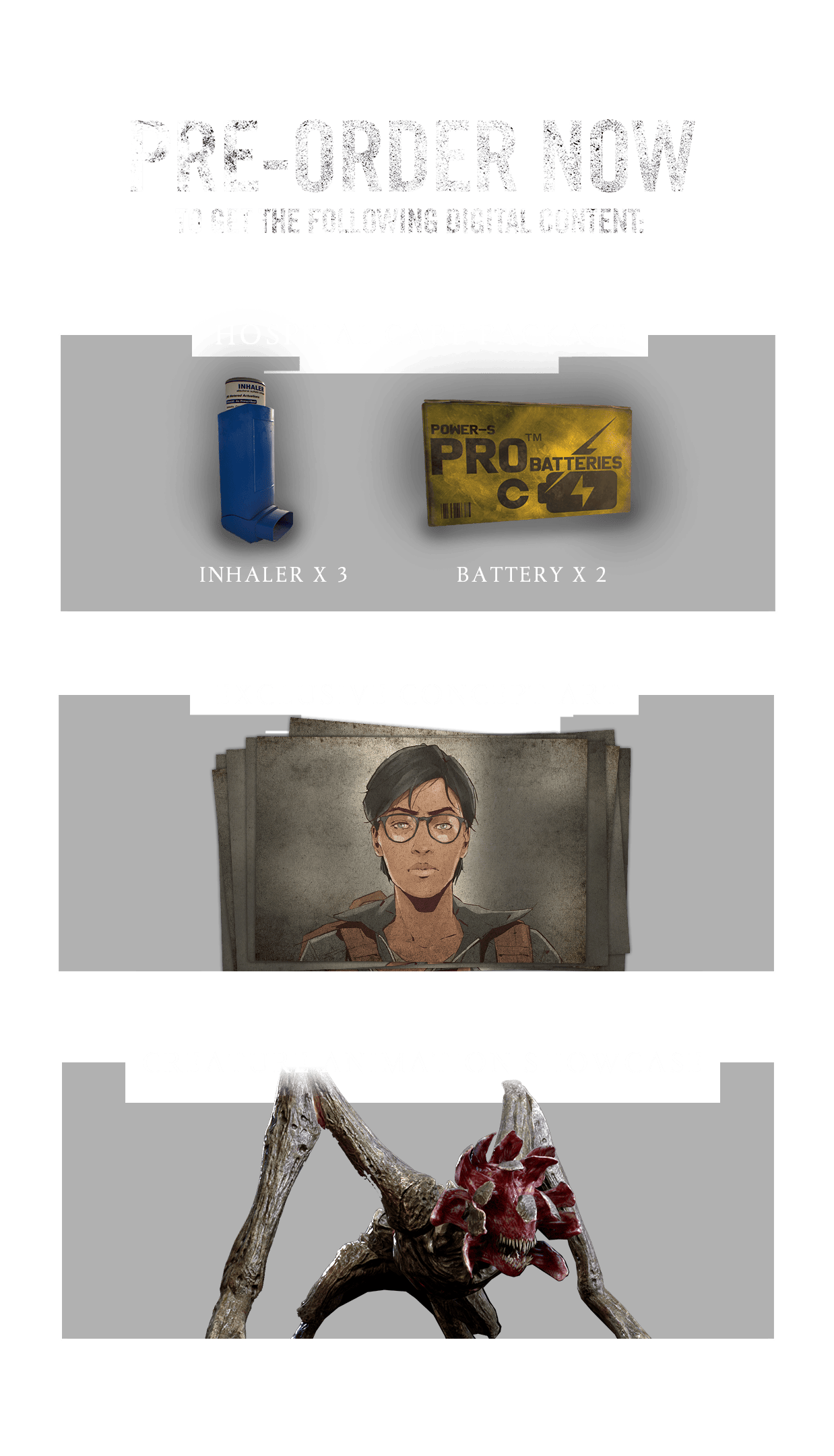 Experience absolute terror as you strive for silence when hiding from, and sneaking by, horrific creatures who hunt using only sound.